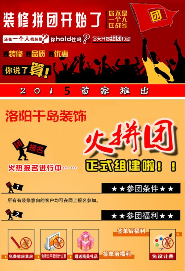凡通過網絡報名后,我們工作人員會以短信或者電話確認登記,憑借短信到店咨詢即可成為本次團裝活動團員!趕快行動起來,終極神秘大禮等你來拿!洛陽千島裝飾,速度、品質、性價比,我們力爭做洛陽的裝飾公司!