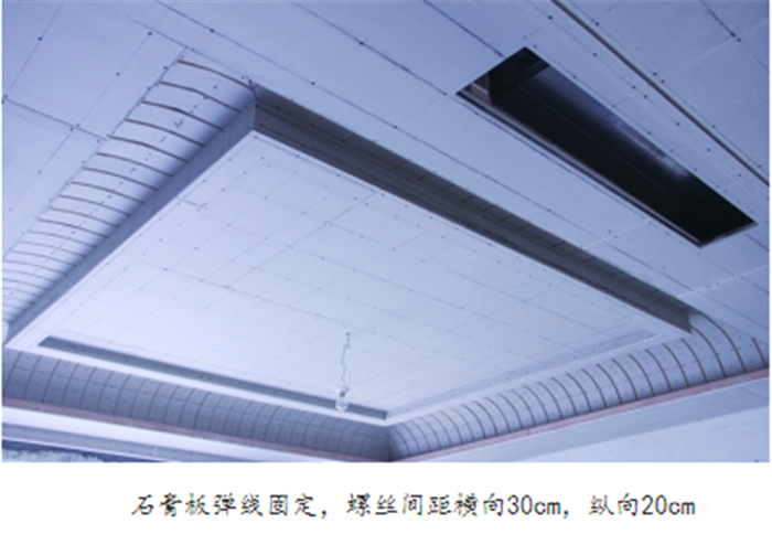 8.石膏板要用沉頭自攻螺絲固定,進入板面1~2mm,并做防銹處理,不能用槍釘