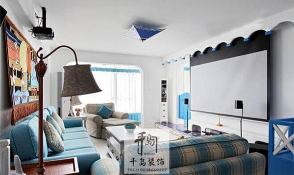 提起地中海風格,首先便想到的是滿目的藍色,淺淺的藍,寂靜的藍,各種色系的藍,這就時候地中海的風格的靈魂。客廳大面積使用淺色系的藍,家具,墻壁都是藍色,清新之氣撲面而來。相信如果你家客廳是這樣的,你肯定會賴在客廳不挪窩了。