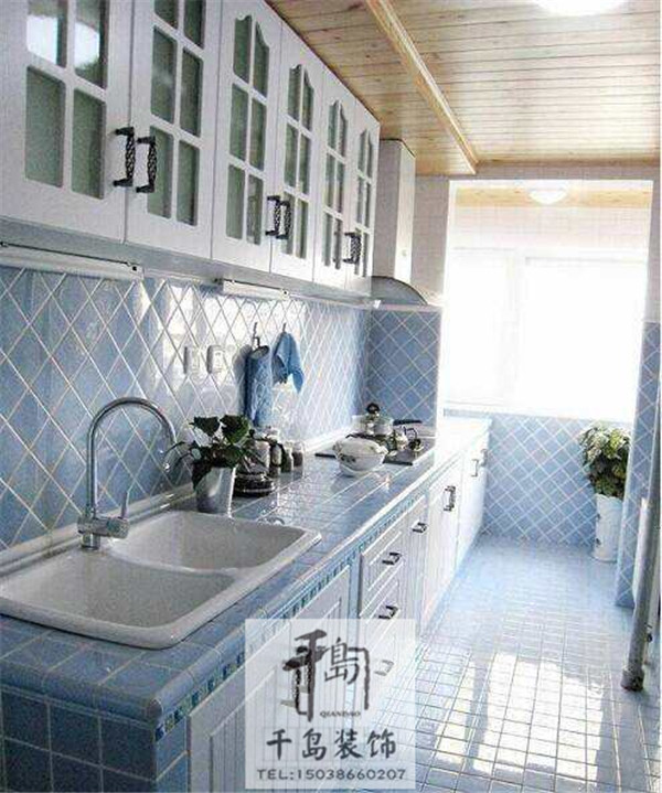 廚房與地中風格碰撞,那效果絕對是意料不到的驚人。充滿煙火氣息的地方與自由舒適的地中海風格結合,從此做飯不在無聊,只愿待在這么一方空間。