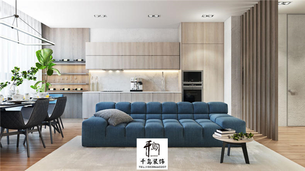 一個暖木色的家中來點藍色的顏色,從廚房到餐廳再到客廳,要不是合理的搭配就會讓整個空間都顯的那么的擁擠,要不是顏色的合理搭配,視覺上能夠那么的協調嗎。