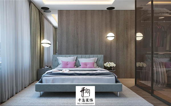 來到了臥室一對粉色的靠枕渲染著主人的少女感,其實一點粉色在更好的緩和臥室,因為灰色和白色的占領了整個空間。細心的你可能會發現兩邊不同的床頭柜,不同的外觀和造型扮演著不同的角色。球形的掛燈是不是感覺像兩個耳墜呢,特別時尚有沒有。