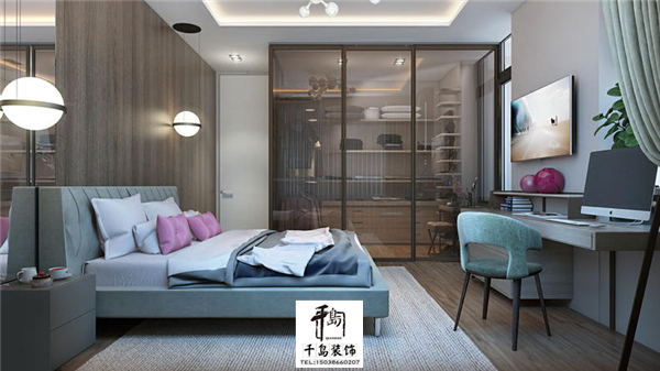 房間的四面八方都是采用了玻璃,讓房間更加的通透舒適,雙層的窗簾也是為喜歡睡懶覺的你準備的,在拉上窗簾的那一刻就是黑夜。因為空間小電視柜和書桌都是連一起的,還采用了懸空的設計,讓設計感無處不在。