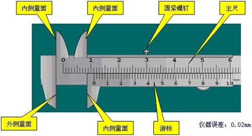 用途:測量長度、內外徑、深度,是一種被廣泛使用的高精度測量工具,由主尺和附在主尺上能滑動的游標兩部分構成。