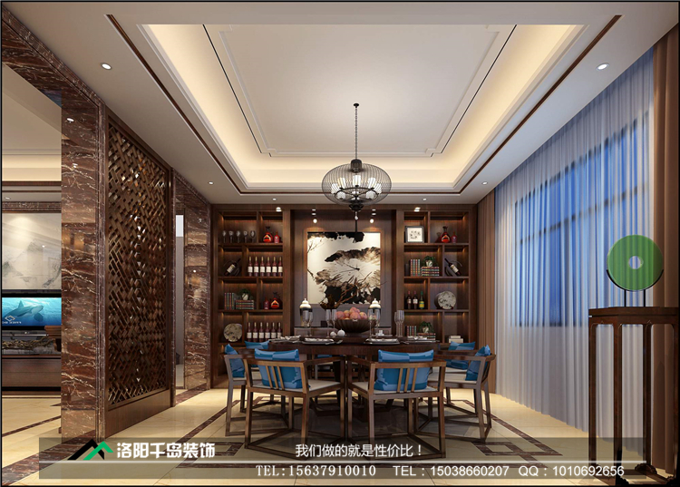 洛陽開元名郡225㎡復式新中式裝修案例@一樓餐廳