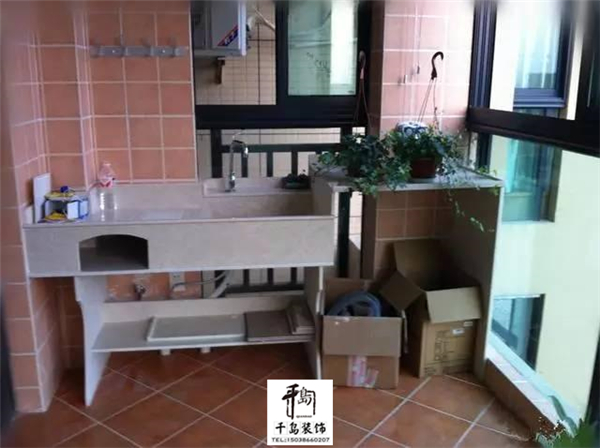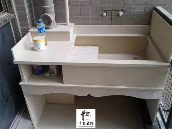 使用花崗巖制作的臺面,還可以把洗衣機放在里面,這樣以后在陽臺上面洗衣服很方便。