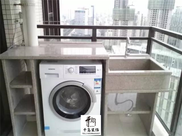 現在樓房在陽臺上面都安裝了地漏,這樣就方便多了,可以把陽臺設計成這種。這樣既有洗漱池還可以放洗衣機,關鍵是不占空間,很整齊。