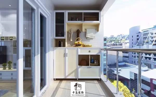 陽臺的空間大的話,還可以這樣設計,一邊做成儲物柜,另一邊設計成洗漱池,一舉兩得。