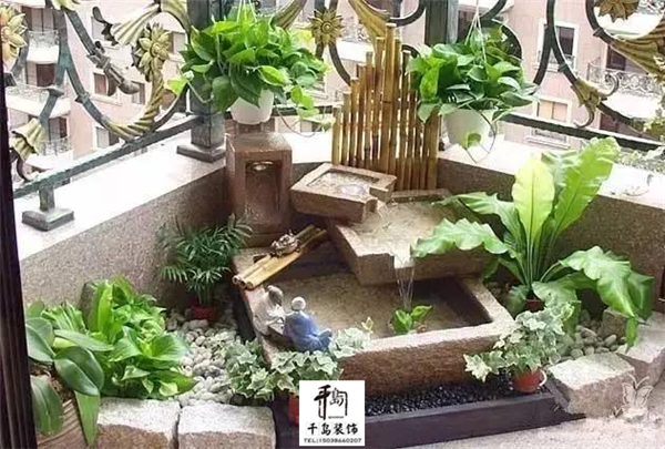 這是在陽臺上面設計的水景,生活充滿了詩情畫意啊!