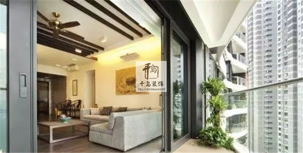 偏大戶型:對于客廳面積正?;蚱笠稽c的戶型,陽臺與客廳之間還是盡量裝一個推拉門更具有實用性。因為裝門能夠保障我們的隱私性以及阻隔灰塵等,而且保溫性能也會好上不少。