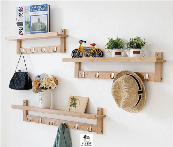樹枝款式的衣帽架很時尚,混搭一件不同高矮和色調(diào)的組合在一起也是別有一番情調(diào)。它的每一個枝丫都能隨手掛上衣帽包包,實用性超強。還有橫向的實木衣帽掛鉤,上面的小平臺可以放一些盆栽雜志,它更像裝飾品,裝點效果非常好。