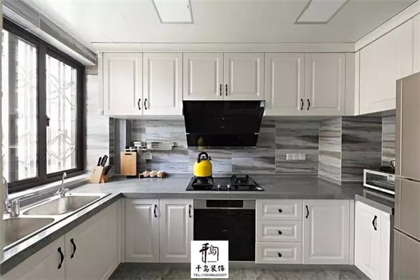 白色的廚房給人帶來清新自然的做飯環境,墻上的瓷磚豐富了廚房的色調讓廚房更加自然。