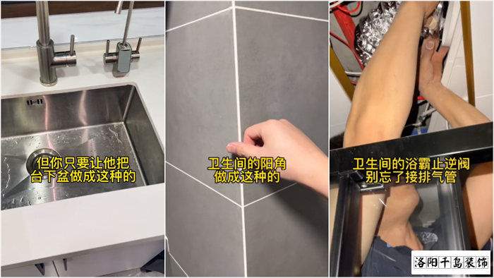 四、不管你是半包全包還是自己裝,在你不懂的情況下,你能參與的地方真的很少,但你只要讓他把臺下盆做成這種的,衛生間的羊角做成這種的,衛生間的浴霸止逆閥,別忘了接排氣管,你家裝完幾乎就沒什么大毛病。