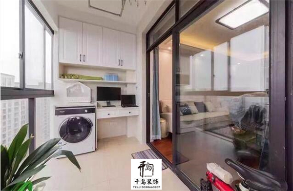2、陽臺放洗衣機,是不是沒有想到還有這種操作。現在戶型都很小,衛生間都放不下洗衣機。那么在陽臺上放洗衣機就成了一個不錯的選擇,而且洗衣機上面也可以打柜子,也不用擔心浪費了空間。