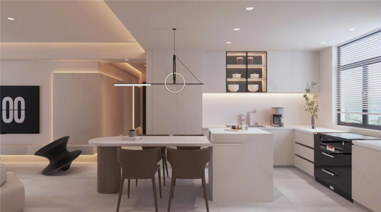 第八,廚房臺面選巖板的,他看著確實挺好看,顏值挺高,但是你不知道它脆呀,非常容易崩瓷,想實用你就選擇一個兩公分的石英石,結實耐用,性價比還高。記住裝修不要盲目的跟風網紅設計啊,盡量別做實用為主。