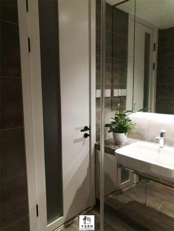 次衛(wèi)是個(gè)暗衛(wèi),沒(méi)有窗戶,所以選購(gòu)了一長(zhǎng)條磨砂玻璃的門(mén),解決了采光問(wèn)題;